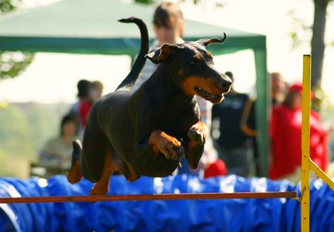 Ačkoliv dobrman není na parkuru agility k vidění tak často, je to pes velice vhodný pro tento sport.